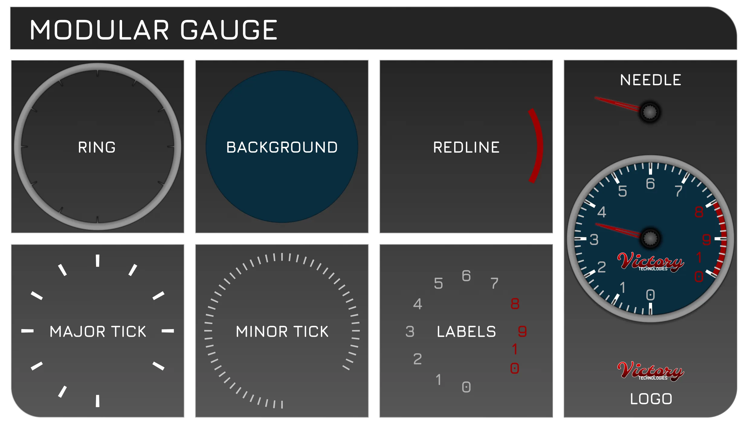 Ring, background, needle, redline, tick marks, labels, and logo placement can be adjusted independently. Rather than relying on fixed presets, players construct their own layout from discrete parts.